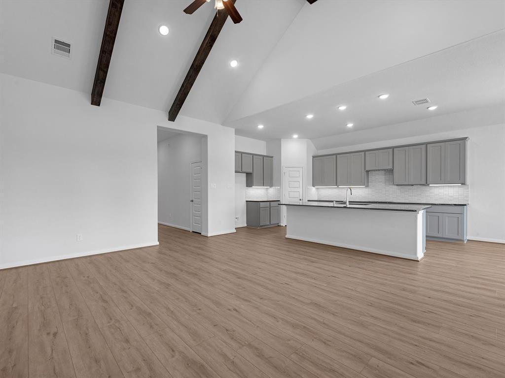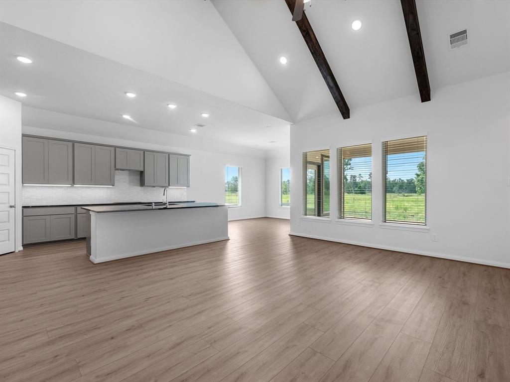 Create unforgettable moments with this charming home. This home features a Stone/Brick elevation, 4 side brick, a 3-car garage, luxury vinyl plank flooring, blinds, an extended covered patio, 4 bedrooms, and 4 baths. Upgraded 8’0’ Front Door with glass texture. Oversized Spa Shower in Master Bath, Vaulted Ceilings with Faux Pine-Stained Wood Beams, Gas cooktop, 10” depth Stainless Steel Kitchen Sink, Irrigation system and sod at front yard. Create new recipes at the spacious kitchen island with a gourmet kitchen package, Gas cooktop, 10” depth Stainless Steel Kitchen Sink, fully equipped with granite countertops, tile backsplash. Relax in the tranquil primary suite with a bay window, a walk-in closet, and dual vanities. It is nestled in the piney woods of Cleveland, Texas. You don’t want to miss this beautiful home – call now!