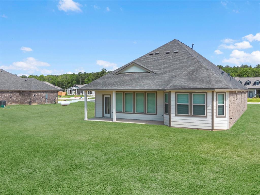 This gorgeous McKinley Homes in the Barton Place community has it all. The home boasts a stone and brick elevation, a 3-car garage, luxury vinyl plank flooring, beamed ceilings, an extended covered patio, blinds, garage door openers, and an irrigation system in front of this home. Try a new recipe in the kitchen, complete with omega stone countertops, a tile backsplash, a 30” gas cooktop, and stainless-steel appliances. Take a well-deserved break in the serene primary suite, fully equipped with a bay window, a walk-in closet, dual vanities, and a deluxe spa shower. Situated in beautiful Cleveland, Texas, this home is located near popular shopping, dining, and entertainment, are also a short drive away. Community comforts are nestled in the piney woods and the peaceful community of Cleveland. Don’t miss out – call now!